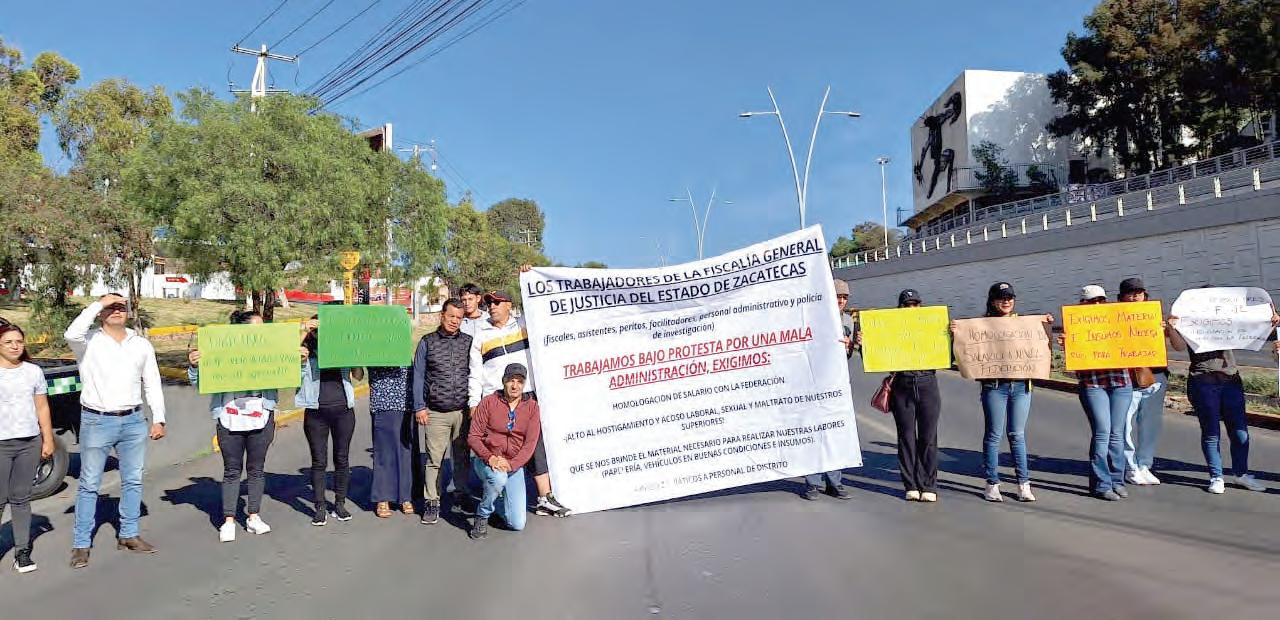 ● ESAÍ RAMOS. Mientras se realizaban las actividades del Domingo Familiar, trabajadores de la Fiscalía General de Justicia del Estado (FGJE) se manifestaron para exigir homologación salarial y denunciaron que compañeros fueron víctimas de acoso laboral.