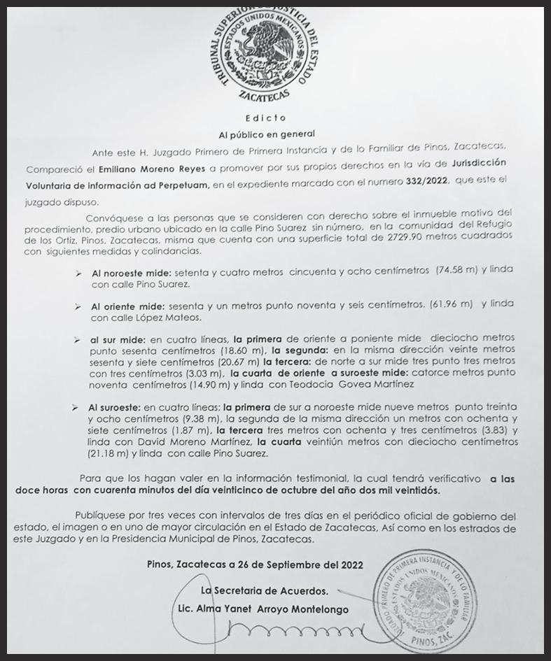 miento, etc. Sup. 171-08-71.62 Hect. Const. 1, 695 M2. Inf. Bienes Raíces Guillermo Sigg tel. 492 9220146 y 492 9226672. J1