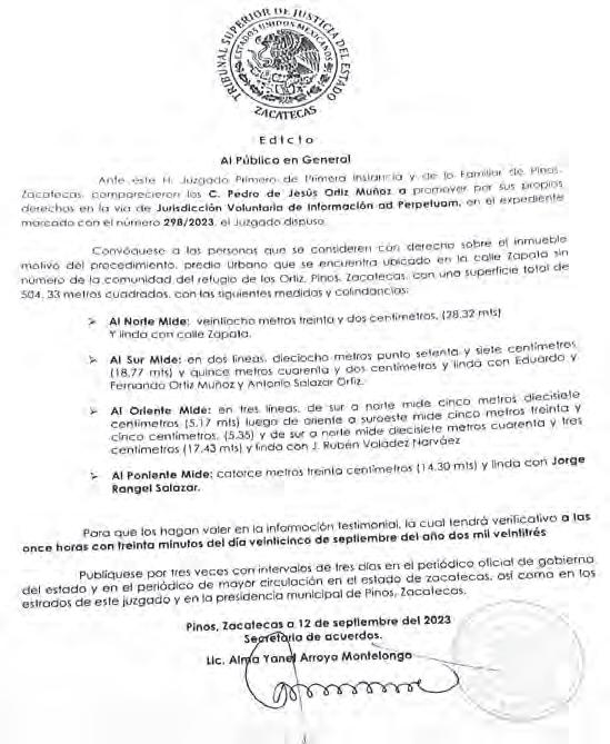 Zacatecas, Zac. Año XVI Número 5291 $15.00 FRESNILLO 94.3 FM RÍO GRANDE 98.7 FM / SOMBRERETE 92.3 FM / TLALTENANGO 90.1 FM Y 1100 AM / CONCEPCIÓN DEL ORO 101.3 FM / PINOS 102.5 FM www.ntrzacatecas.com ESCANEA EL QR PARA VER LA VERSIÓN DIGITAL