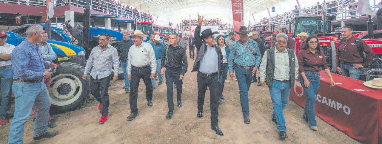 ● EN EL MARCO de la Feria Nacional de Zacatecas (Fenaza) 2023, el gobernador David Monreal Ávila encabezó la Expo Agropecuaria, donde se invirtieron 110 millones de pesos que, mezclados con la aportación del productor, generó una derrama de 250 millones. Más de 1 mil productores se beneficiaron con equipo especializado, semillas, sementales, tractores e implementos.