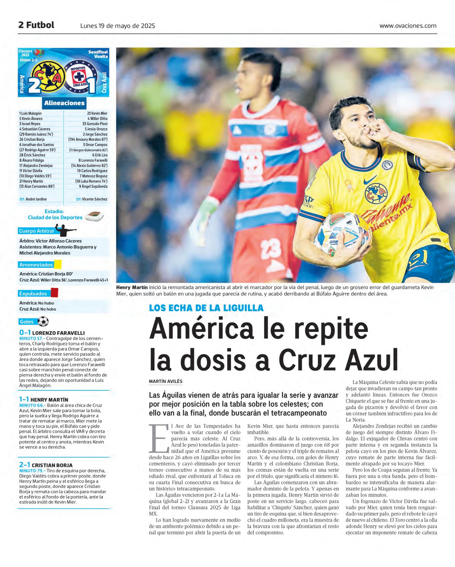 ● LA MÁQUINA fue eliminada por tercer torneo consecutivo por su acérrimo rival: el América, al empatar 2-2 en el global. Los azulcremas enfrentarán en la Final de la Liga MX al Toluca y buscarán el tetracampeonato. MARTÍN AVILÉS ¡OOOTRA