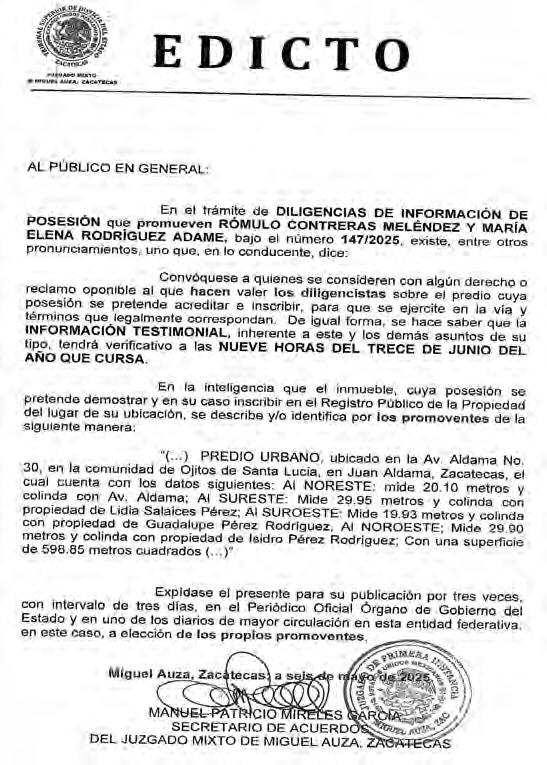 Finalmente, durante la sesión pública se resolvieron, por unanimidad, los expedientes de clave TRIJEZ-JDC-009/2025 y acumulados, así como el diverso TRIJEZ-PES-088/2024, relacionados con asuntos internos del Partido de la Revolución Democrática (PRD) y hechos concernientes al periodo de campaña del pasado proceso electoral 20232024, respectivamente.