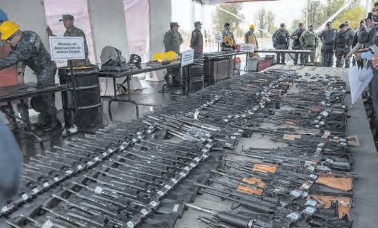 ● ESTE JUEVES en las instalaciones de la undécima Zona Militar se destruyeron más de 45 mil municiones, 655 cargadores y 252 armas, las que se obtuvieron derivado de las distintas acciones de pacificación de las corporaciones, informó el gobernador David Monreal Ávila. Mientras que la Fiscalía General de la República (FGR) incineró dos toneladas, 491 kilos, 672 gramos y 690 miligramos de narcótico, así como 221 unidades de droga y 243 mil 727 objetos del delito.