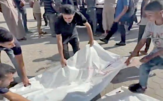 z Dolientes llevan el cuerpo de una víctima de un bombardeo israelí en el patio del hospital al-Aqsa, en Deir al-Balah.