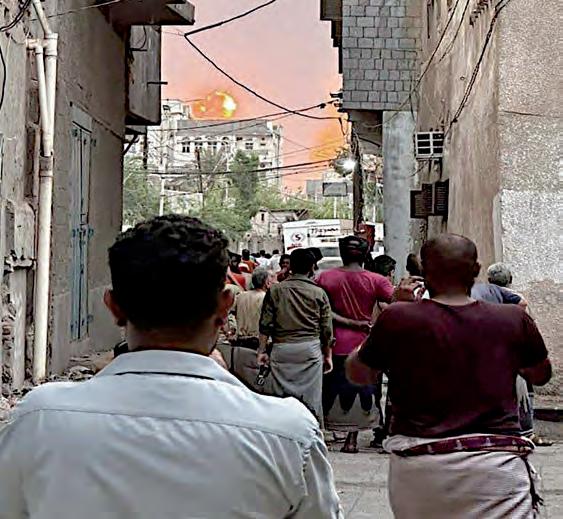 z Habitantes de Hodeidah observan los estragos de los ataques registrados ayer en la ciudad controlada por los hutíes.