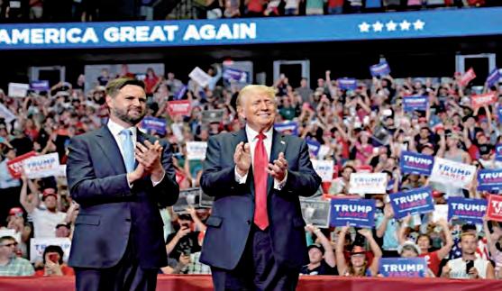 z El ex Presidente Donald Trump y el senador republicano J.D. Vance encabezaron ayer un acto de campaña en Michigan.