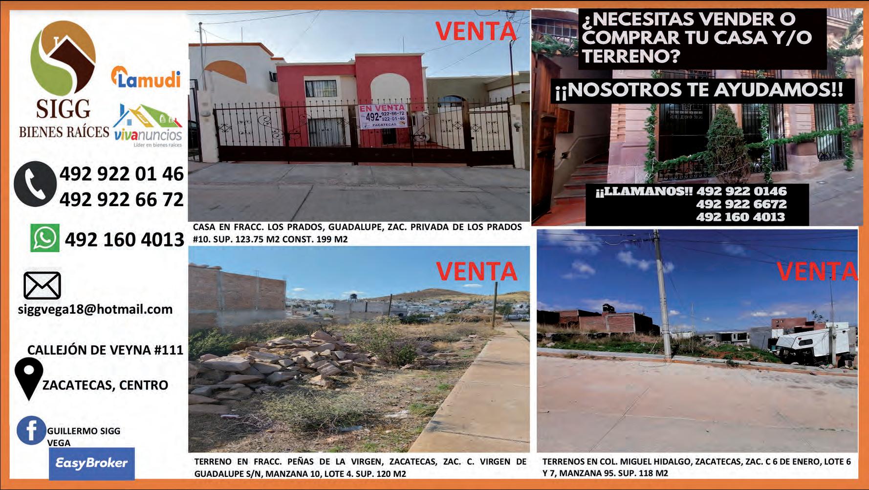 CONST. 218 M2 Inf. Bienes Raíces Guillermo Sigg tel. 492 922 0146 y 492 922 6672.