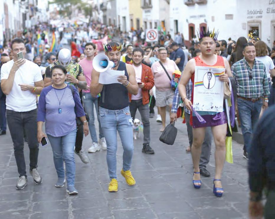 ● Durante la tarde del sábado se realizó la 21 Marcha de la Diversidad Sexual, en la que desfilaron 18 colectivos de la comunidad LGBTIQ+ por las calles del Centro Histórico. En esta ocasión la marcha fue tanto para exigir sus derechos como también celebrar avances legislativos en beneficio de la comunidad, detalló Fernanda Delgado, integrante de TRANSformando vidas Zacatecas. DAVID CASTAÑEDA NUESTRA COMUNIDAD A 2