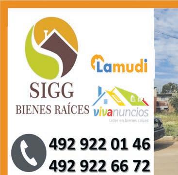 Inf. Bienes raíces guillermo sigg tel. 492 9220146 Y 492 9226672. A4