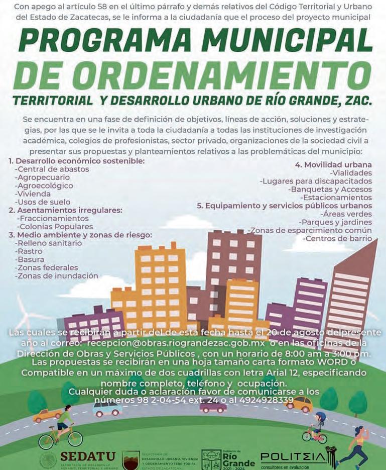 Jueves 24 de agosto de 2023 Zacatecas, Zac. Año XVI Número 5267 $15.00 FRESNILLO 94.3 FM RÍO GRANDE 98.7 FM / SOMBRERETE 92.3 FM / TLALTENANGO 90.1 FM Y 1100 AM / CONCEPCIÓN DEL ORO 101.3 FM / PINOS 102.5 FM www.ntrzacatecas.com ESCANEA EL QR PARA VER LA VERSIÓN DIGITAL