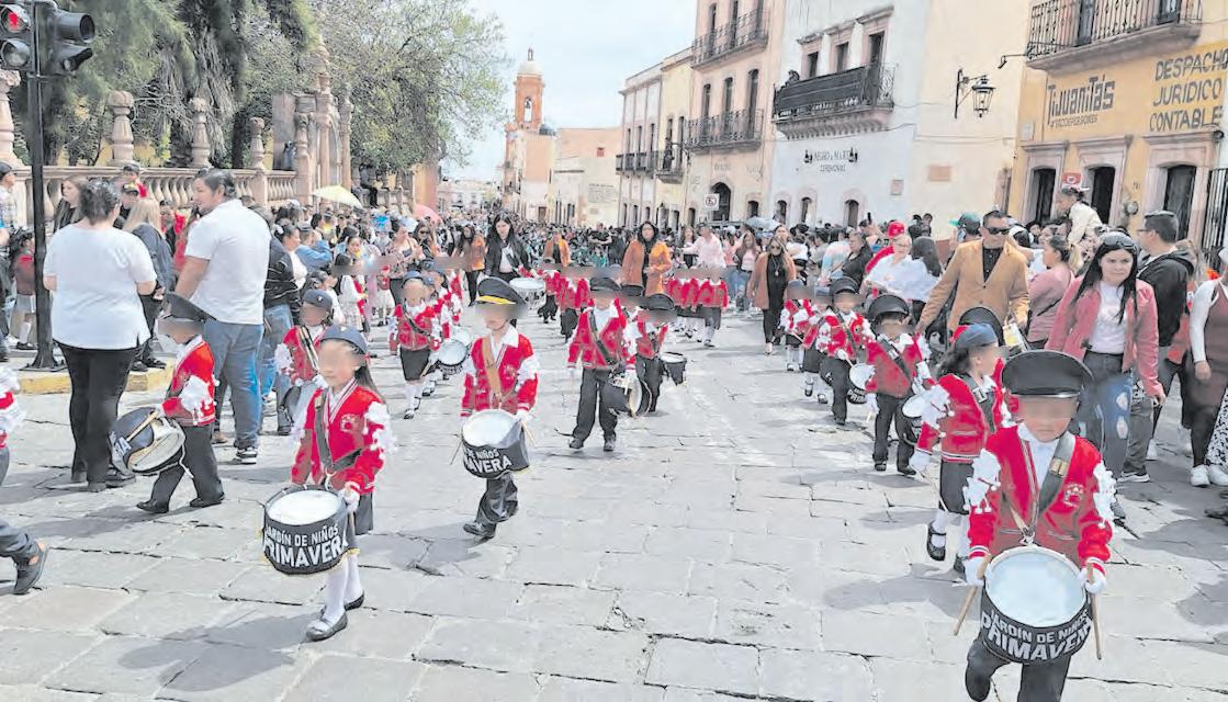 En el Centro Histórico de la capital, cientos alumnos de preescolar marcharon para honrar a la Bandera de México.