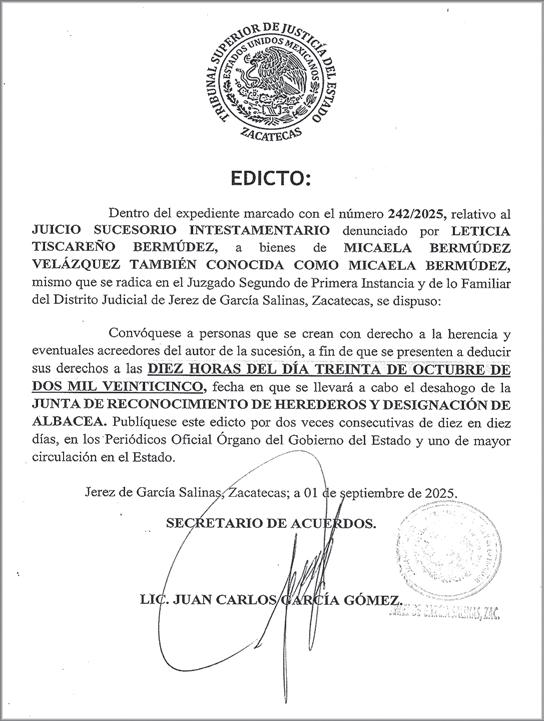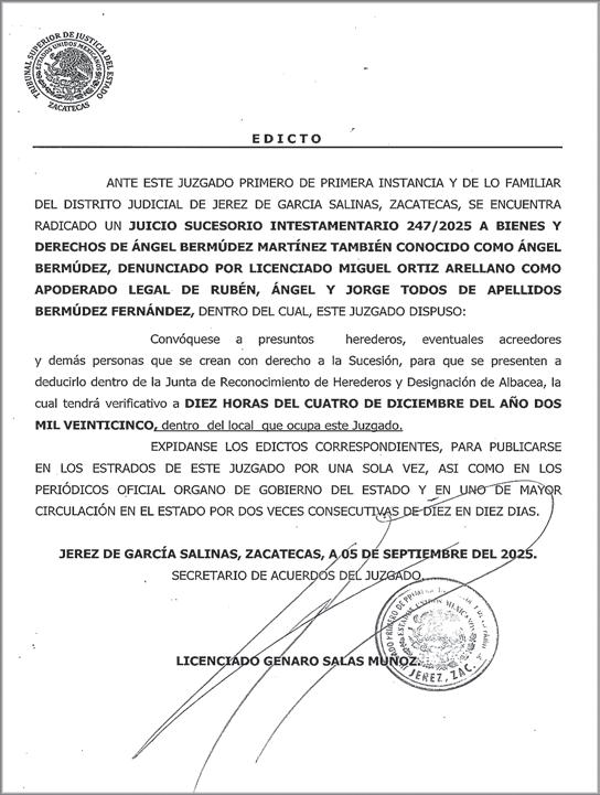 La Comisión Nacional de Derechos Humanos (CNDH) emitió la recomendación195VG /2025 en contra de los titulares de las secretarías de la Defensa Nacional (Defensa) y Seguridad Pública (SSP) en Zacatecas por la violación grave a los derechos humanos a la vida, seguridad jurídica y el uso ilegítimo de la fuerza que derivó en la muerte de 14 personas.