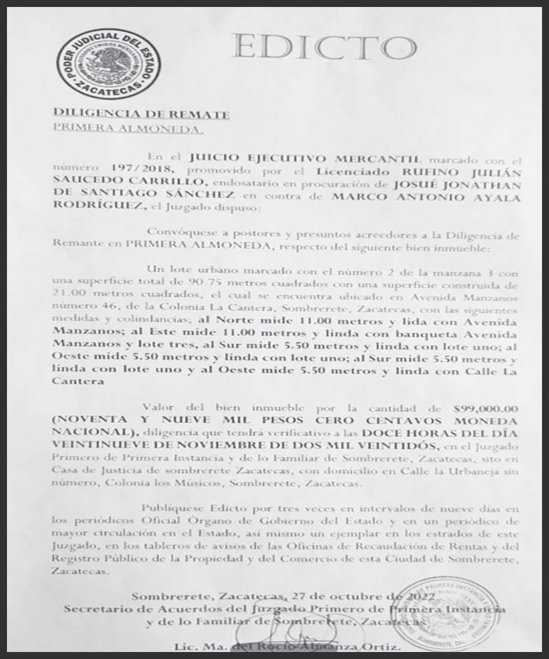 Zac. Inf. Bienes Raíces Guillermo Sigg tel. 492 9220146 y 492 9226672. J3