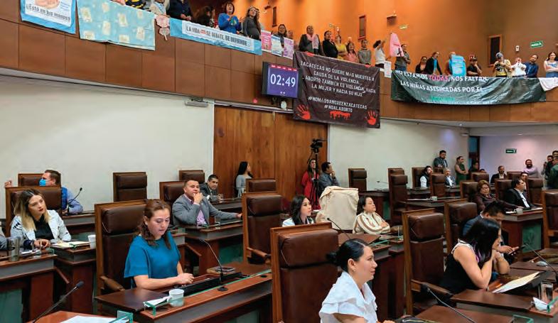 sentan”, en referencia a los diputados que apoyaban la iniciativa. “Yo les pido que podamos conducirnos con respeto a los oradores”, les dijo el diputado David González Hernández, presidente de la mesa directiva. En noviembre, la Legislatura aprobó la reforma para despenalizar el aborto, pero estaba pendiente la modificación a la Ley de Salud y había oposición de médicos para realizar el procedimiento con el argumento de la objeción de conciencia.