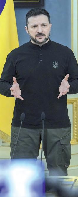 z Soldados ucranianos, familiares y otras personas participaron ayer en el funeral de un militar.