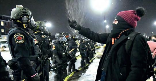EL BLOQUEO de los agricultores coincidió con la manifestación del personal de salud, al que expresaron su apoyo.