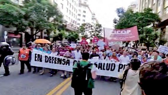 ciación de Trabajadores del Estado (ATE), que incluye a empleados públicos a nivel nacional, provincial y municipal en empresas estatales y entes autárquicos. Médicos y enfermeros marcharon también “en defensa de la salud pública” en Buenos Aires para reclamar al Gobierno por los recortes de insumos médicos y a los programas de atención sanitaria.