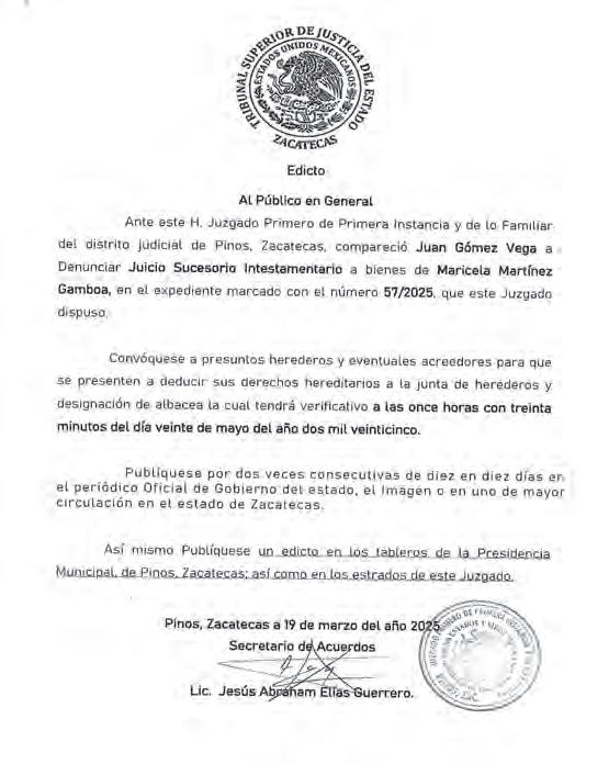 Y ES QUE en esta semana estuvieron cerrándose negociaciones para impulsar a cinco candidatas de diferentes grupos, pero que ahora tienen una causa común: cerrarle el paso a Yasmín Esquivel para que no gane la elección y sea la Presidenta de la Corte. Algo así como el Tucoy, Todos Unidos contra Yasmín UNO DE LOS PRINCIPALES PROMOTORES de ese grupo es el propio Zaldívar y ya enarbolan una planilla con los nombres de Lenia Batres y Loretta Ortiz, las dos ministras en activo que estarán en campaña. EN LA LISTA TAMBIÉN aparecen Paula García Villegas Sánchez Cordero, hija de la ex ministra y ahora diputada morenista Olga Sánchez Cordero; Ana María Ibarra, una candidata directa de la escuela de Zaldívar, de quien fue secretaria de Estudio y Cuenta en la Corte, y María Estela Ríos, ex consejera jurídica de la Presidencia de la República en tiempos de AMLO Y SI ALGUIEN tiene dudas del Tucoy, que se dé una vuelta mañana sábado por la tarde en la Universidad de Durango para tomar la fotografía del primer acto conjunto entre las ministras Loretta y Lenia.
