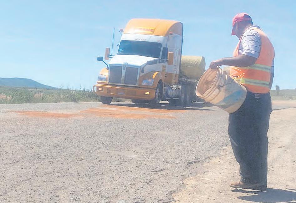 ● VETAGRANDE. Hartos de que las autoridades no hagan algo ante las malas condiciones de la carretera que conecta al municipio con la autopista Zacatecas-Saltillo, algunos habitantes decidieron actuar y acompañados de su pala y bote con tierra, rellenan los agujeros de la vía.