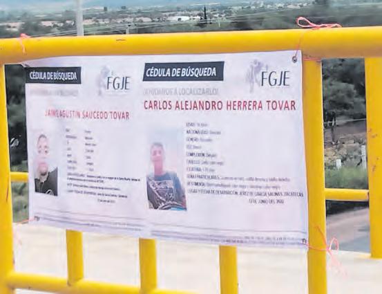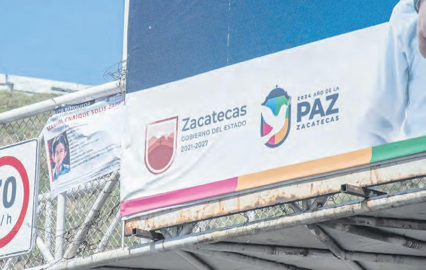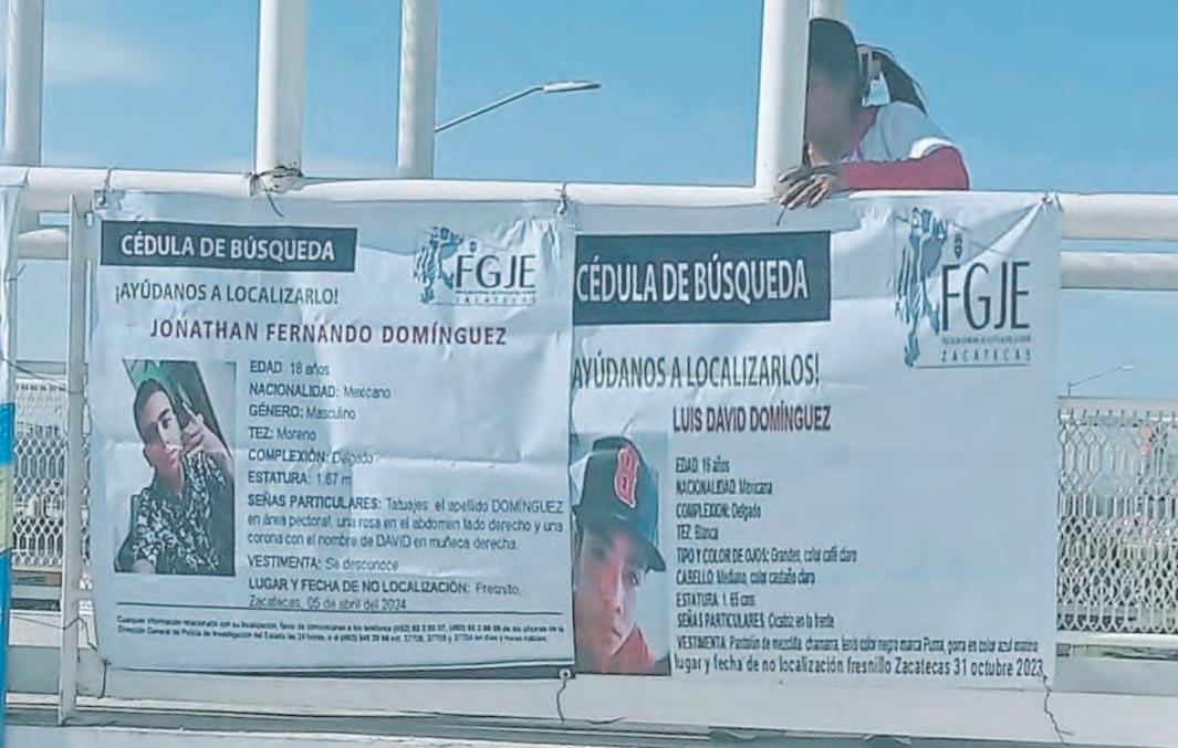 En Fresnillo, 20 familiares de personas desaparecidas colocaron fichas de búsqueda impresas en lonas en los principales puentes, como los ubicados en las vialidades avenida Sonora, Paseo del Mineral, Enrique Estrada y Varela Rico.