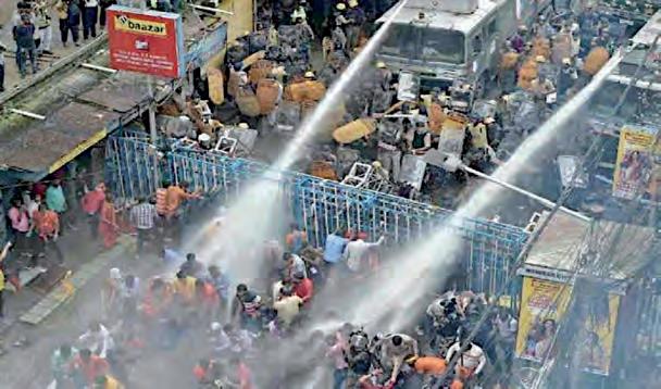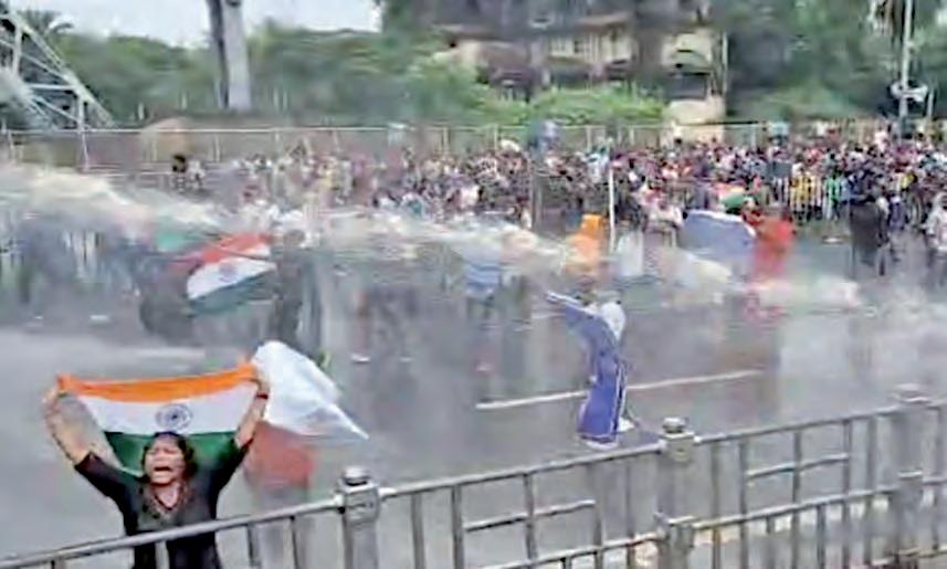 CALCUTA. La Policía india disparó gases lacrimógenos y cañones de agua para dispersar a manifestantes que exigían la renuncia de una alta funcionaria del país, a la que acusan de haber gestionado mal la investigación sobre la violación y asesinato de una médico residente a principios de mes. STAFF