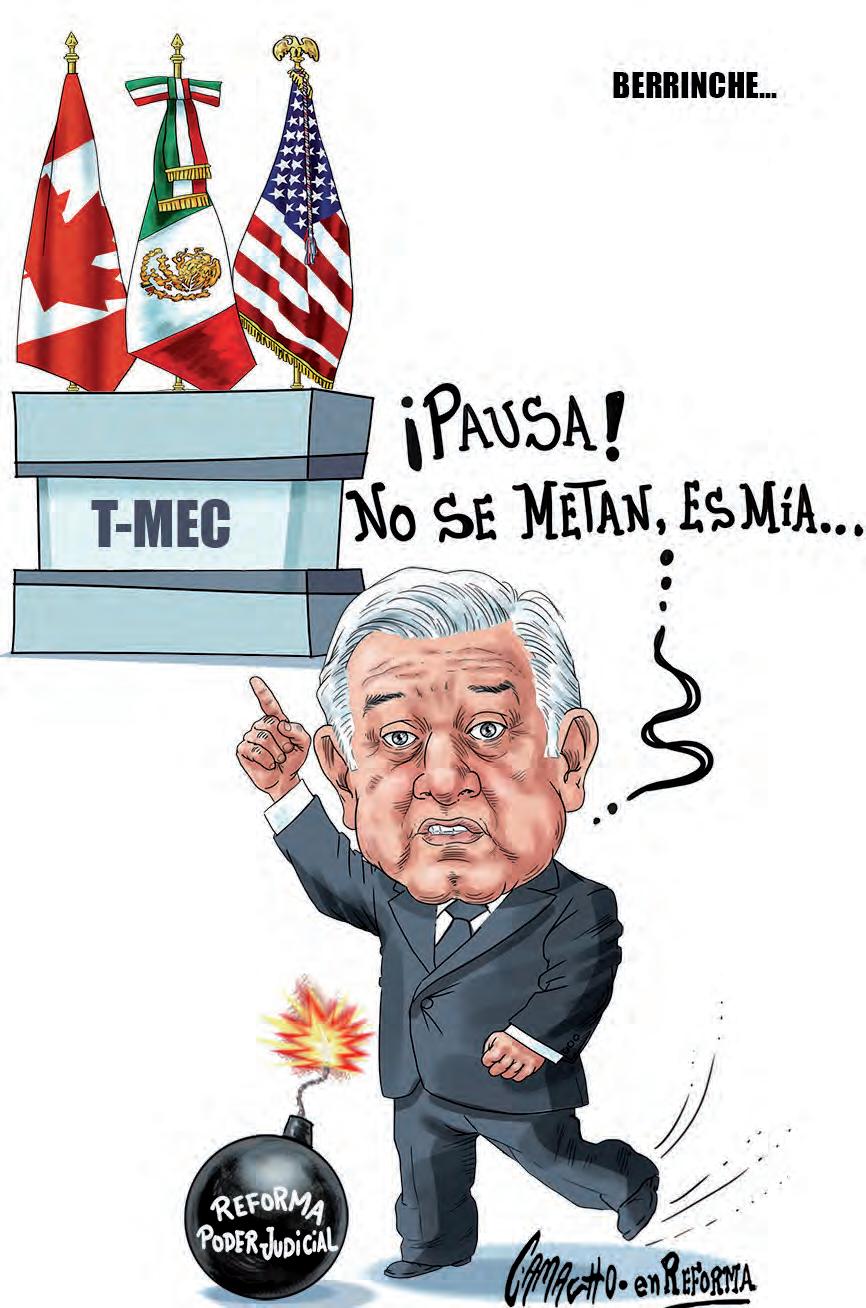 l presidente Andrés Manuel López Obrador reveló que su gobierno pausó la relación con las embajadas de Estados Unidos y Canadá en México, cuyos titulares emitieron “imprudentes e injerencistas opiniones” sobre la reforma judicial que él impulsa. “Tienen que aprender a respe tar la soberanía de México, no es cualquier cosa. Queremos que sean respetuosos y haya una relación recíproca en cuanto al respeto de las soberanías”, dijo. EL FINANCIERO F12