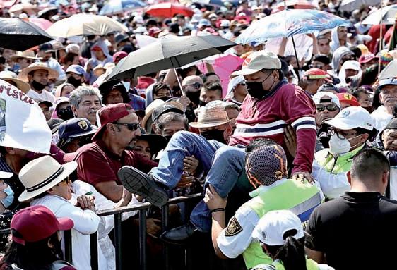 SIN CASTIGO 100% DESAPARICIÓN 99.9% HOMICIDIO 99.9% EXTORSIÓN 99.9% ROBO SIMPLE 99.8% NARCOMENUDEO 98.7% VIOLACIÓN 98.6% FEMINICIDIO 98.5% SECUESTRO Bajo el resguardo de cientos de feligreses católicos La Preladita partió de la Catedral Basílica de Zacatecas de regreso al Santuario de Nuestra Señora de Guadalupe. LANDY VALLE 6-A REGRESA LA PRELADITA SOMBRERETE 90.1 FM FOTO: JUAN ORTEGA Tiembla en la capital