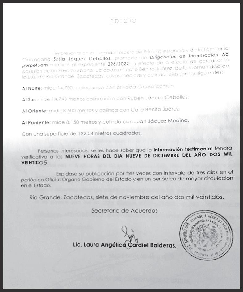 Se vende terreno ejidal en Col. La fe, Guadalupe, Zacatecas. Privada 2da Benito Juárez, lote 7, manzana S/N. Acreditado con constancia ejidal, Cuenta con servicio de luz, agua, pavimento y drenaje. SUP.1,032.80 M2. Inf. Bienes Raíces Guillermo Sigg tel. 492 9220146 y 492 9226672.L1