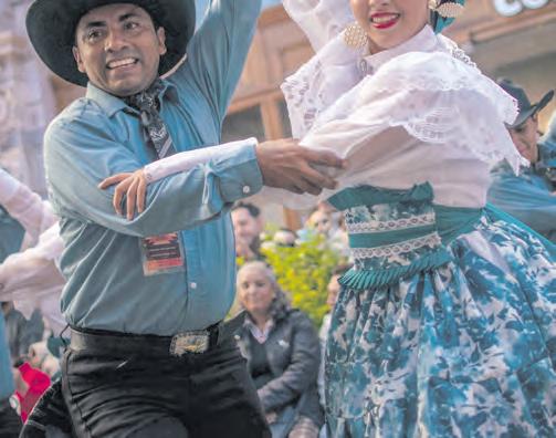 ●LA FIESTA del baile llegó al estado con el desfile inaugural del Festival Zacatecas del Folclor Internacional, que se llevará a cabo desde este domingo hasta el 4 de agosto con presentaciones locales, nacionales e internacionales. Con deslumbrantes atuendos, las compañías llenaron de música y movimiento el Centro Histórico de la capital, desde la avenida González Ortega hasta la plaza de Armas con un recorrido de algarabía y celebración.