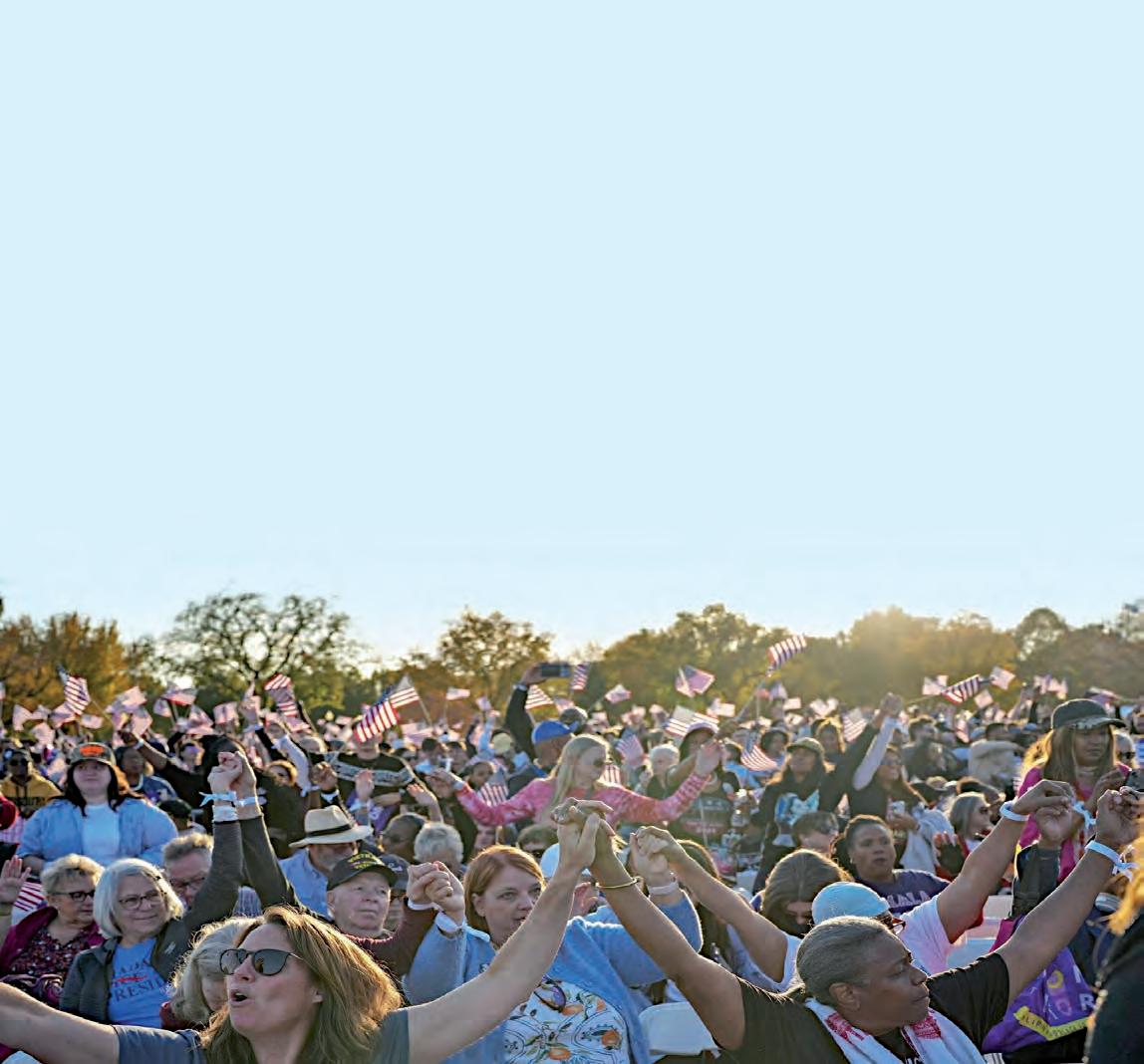 IMPULSO FINAL. Simpatizantes de la candidata demócrata Kamala Harris se reunieron ayer cerca del Monumento a Washington, justo al sur de la Casa Blanca, para el mitin de la Vicepresidenta. @KamalaHarris