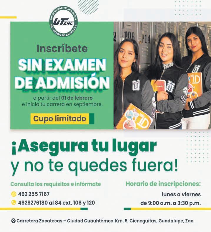 Viernes 31 de mayo de 2024 Zacatecas, Zac. Año XVI Número 5538 $15.00 FRESNILLO 94.3 FM RÍO GRANDE 98.7 FM / SOMBRERETE 92.3 FM / TLALTENANGO 90.1 FM Y 1100 AM / CONCEPCIÓN DEL ORO 101.3 FM / PINOS 102.5 FM www.ntrzacatecas.com SALUD ■ Vapeadores, más peligrosos que cigarrillos A5 ECONOMÍA ■ Pierde Zacatecas trabajos remunerados A5 DEPORTES ■ Va Mateo Girón por Campeón de Campeones A10 SEGURIDAD ■ Irrumpen en casa y asesinan a un hombre A8 POLÍTICA ■ Propuestas de agua y seguridad decidirán votaciones A3 ESCANEA EL QR PARA VER LA VERSIÓN DIGITAL TRUMP ES CULPABLE DE 34 CARGOS POR FALSIFICACIÓN OEA CONDENA ALTA VIOLENCIA EN ELECCIÓN MEXICANA REPUNTA 18% GASTO DEL SECTOR PÚBLICO