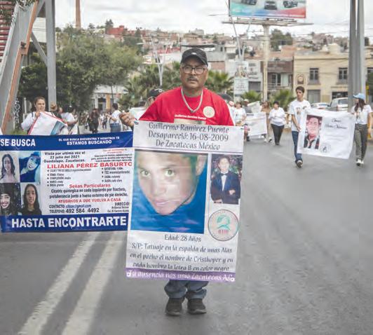 delito tomaron las calles para denunciar la “crisis provocada por la desaparición en Zacatecas”. Advirtieron que son 3 mil 693 personas desaparecidas y no localizadas a la fecha, pero no pierden la esperanza de encontrarlos. Con pancartas en mano, playeras y fotografías, las familias iniciaron su paso desde