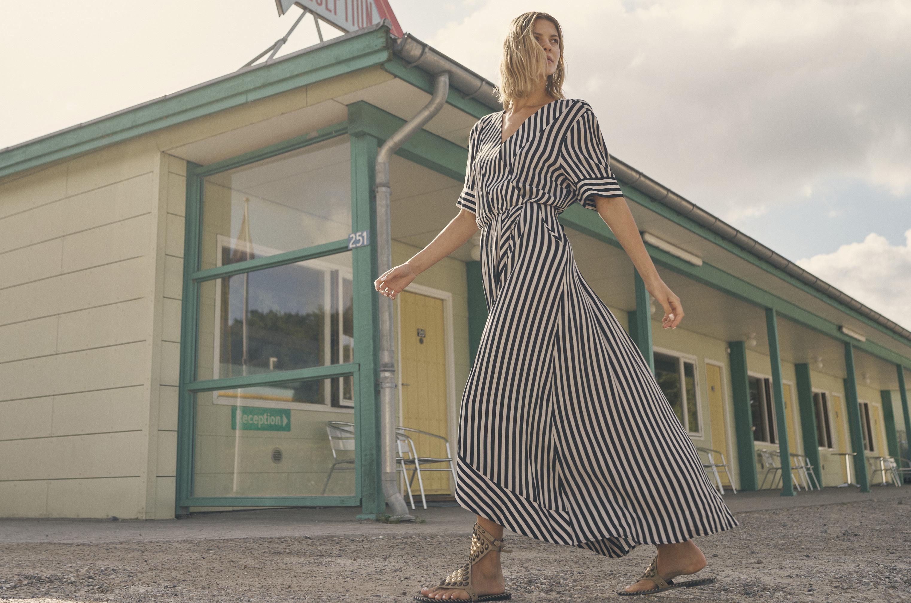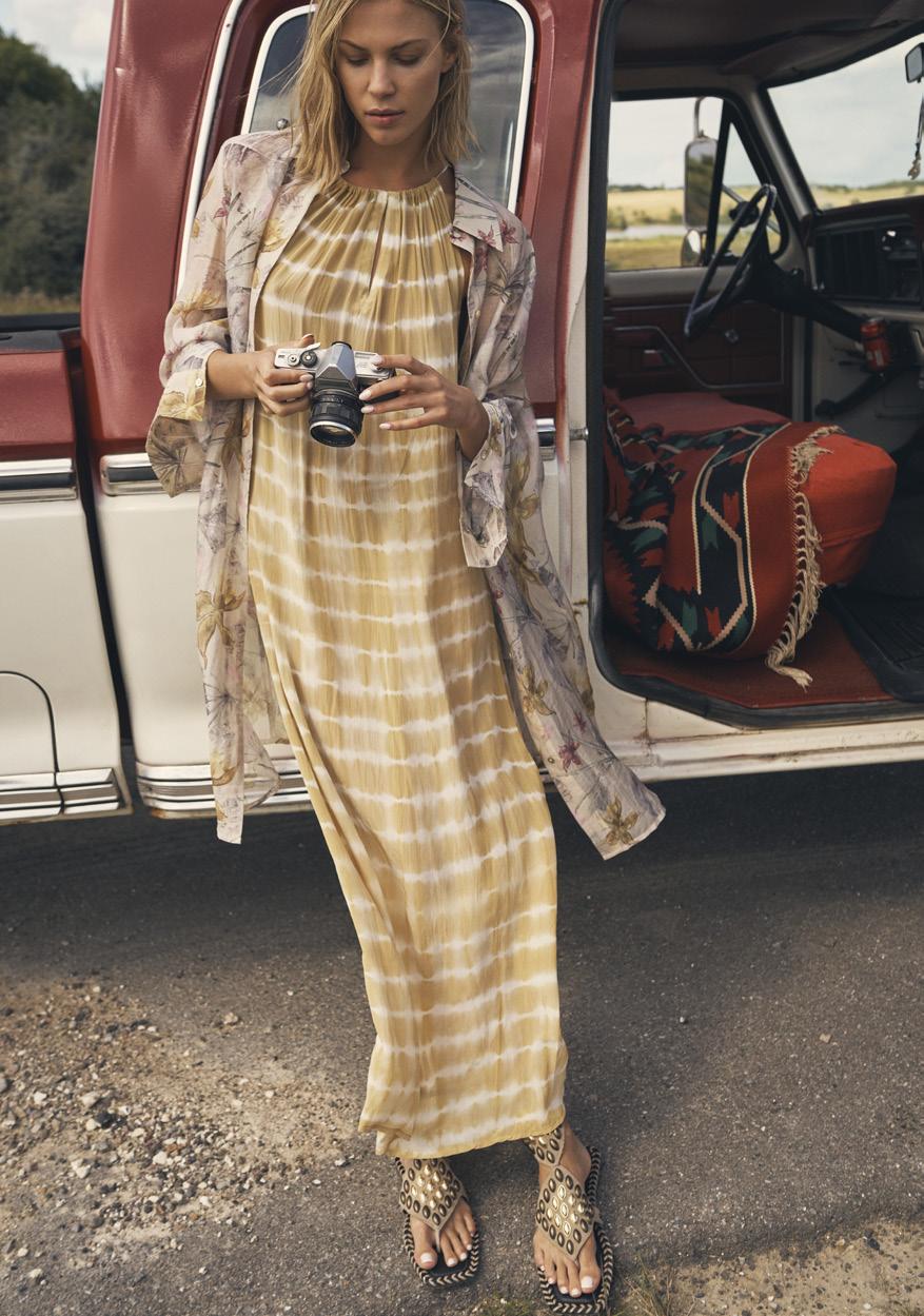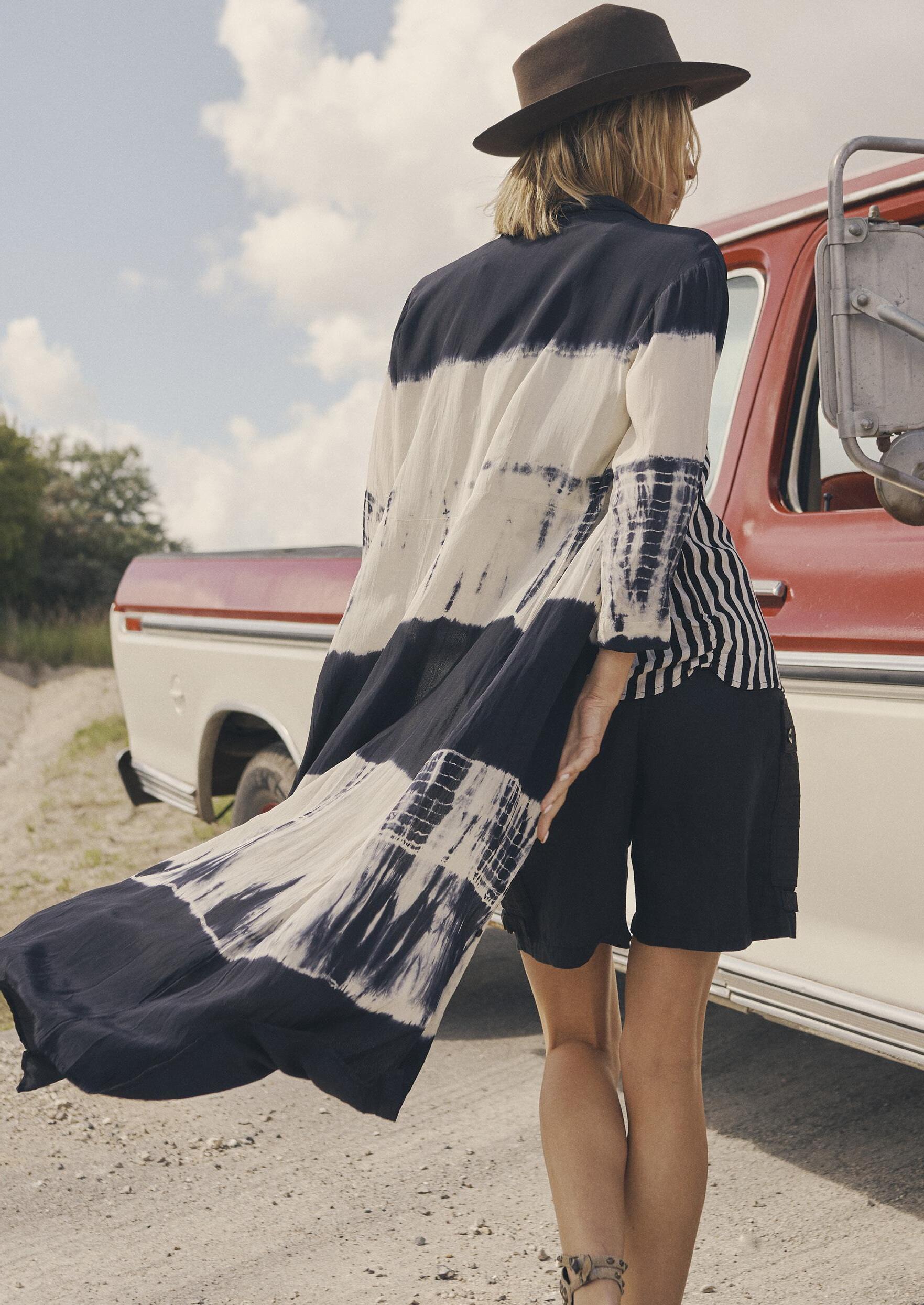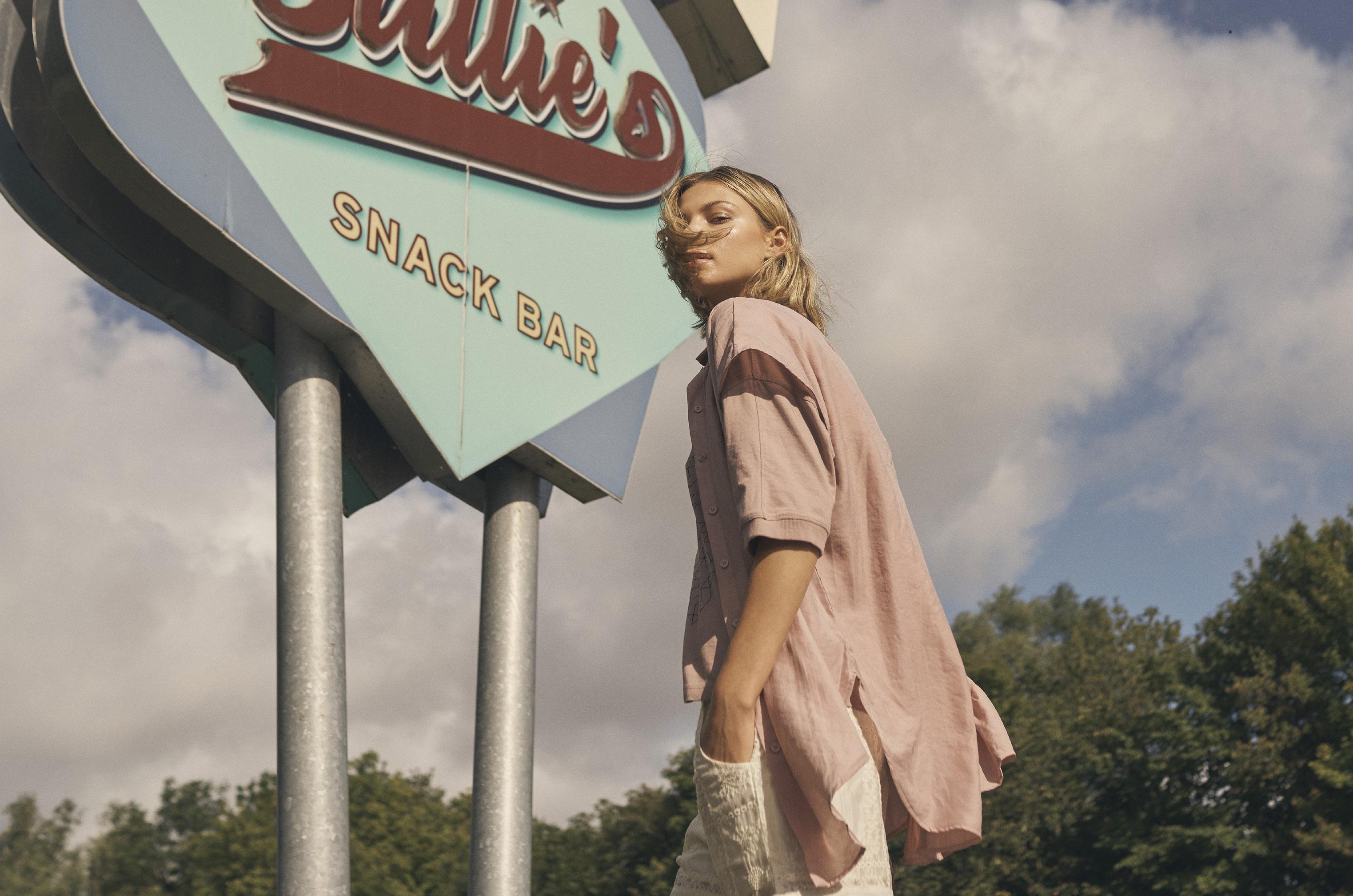 Think sunlit bone tailoring, shoreline sand linens, and buttery beige lace alongside flowing sunset blush silks, vibrant candy pink viscoses, and golden hour tie-dyes. Stripes and painted prints bring movement, while dusty rose florals and bold black-and-white graphics keep each look distinct. Whether in soft, draped shapes or sharp, modern cuts, every piece is designed to mix, match, and move with you – from coastal mornings to desert dusks, from spontaneous detours to destinations unknown. ENJOY