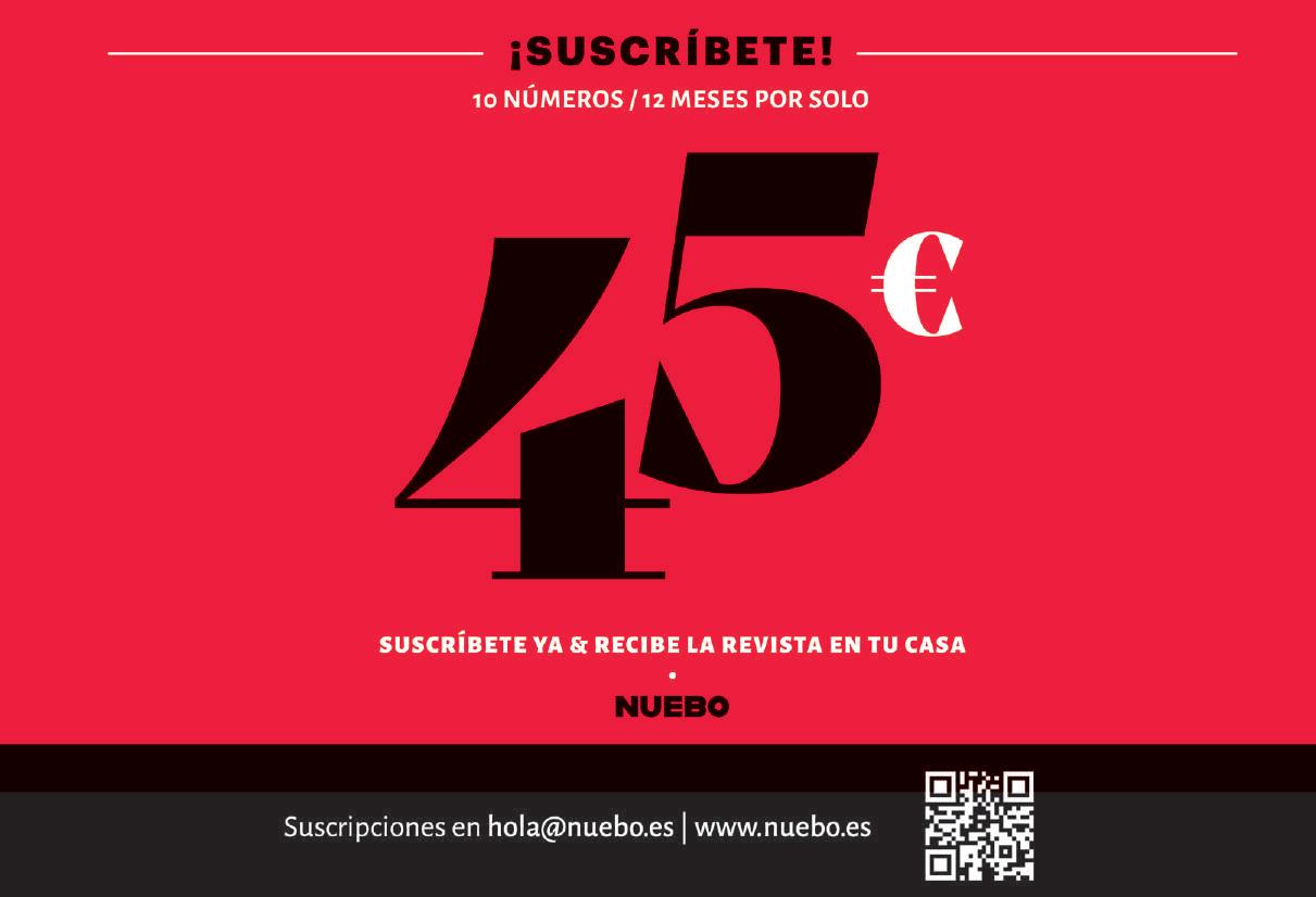 Las opiniones expresadas por los colaboradores no son necesariamente compartidas por el equipo de la revista. Todos los derechos reservados. En virtud de lo dispuesto en los artículos 8 y 32.1 párrafo segundo, de la Ley de Propiedad Intelectual, quedan expresamente prohibidas la reproducción, la distribución y la comunicación pública, incluida su modalidad de puesta a disposición, de la totalidad o parte de los contenidos de esta publicación, con fines comerciales, en cualquier soporte y por cualquier medio técnico, sin la autorización de la empresa editora de la publicación NUEBO S.L.