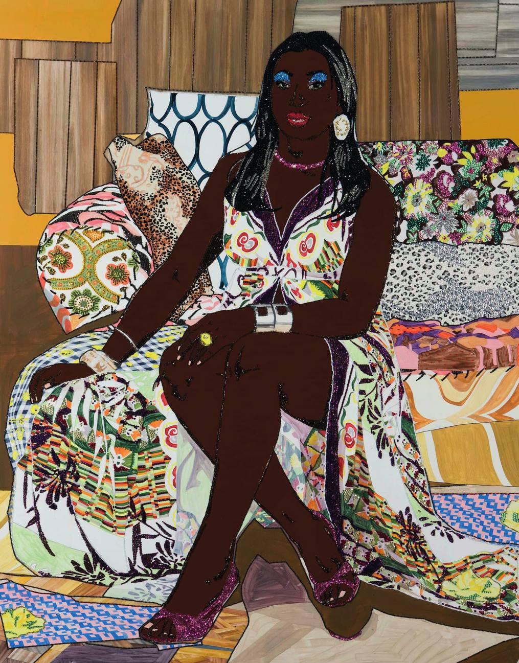 Plantarse ante uno de los grandes collages de Mickalene Thomas es hacerlo ante la Historia de la Humanidad, y para eso hay que prepararse a conciencia. El trabajo de la de Nueva Jersey tiene algo de artista y algo de artesana, algo de historiadora y algo de visionaria. Su reinterpretación del arte occidental pasa por el agradable reto de elogiar la belleza recurriendo a la identidad y la poderosa presencia de mujeres negras en todas sus obras. Su elección de colores explosivos, texturas llamativas, ornamentación brillante, strass, lentejuelas y leves detalles inspirados en la cultura pop y el Blaxploitation golpean las influencias de Manet o Matisse hasta tumbarlos en la lona.