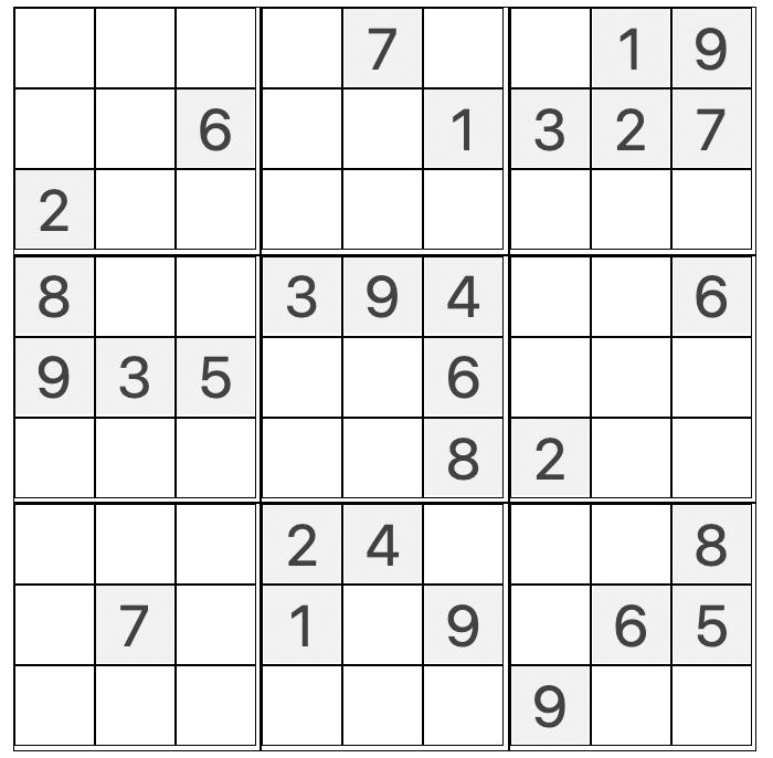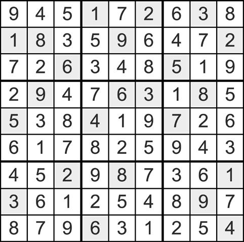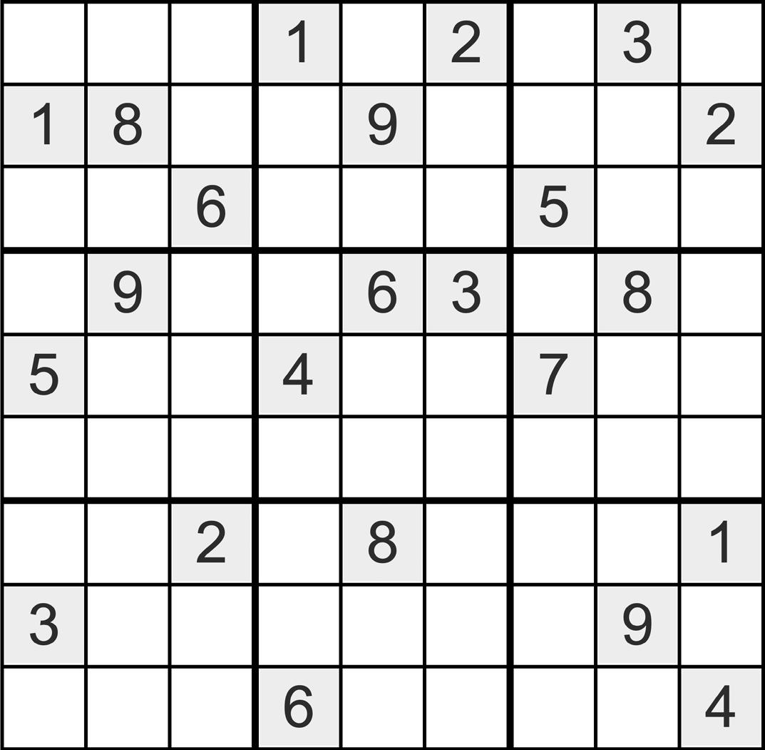 Place a number in the empty boxes in such that each row across, each column wn, and each small nine-box square of the numbers from one to nine.