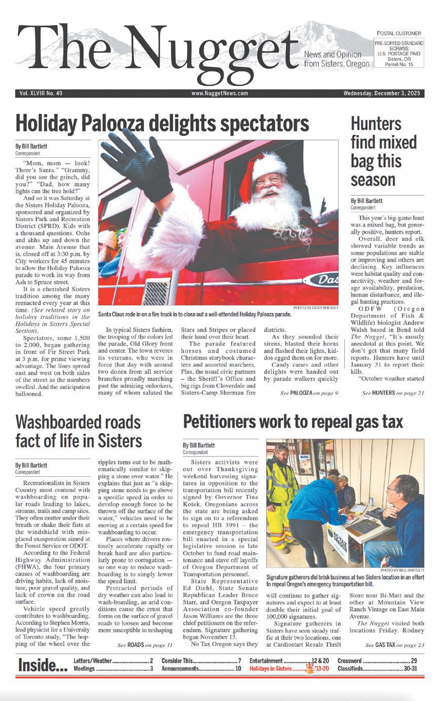 Postmaster: Send address changes to The Nugget Newspaper, PO Box 698, Sisters, OR 97759. 3rd Class Postage Paid at Sisters, OR.