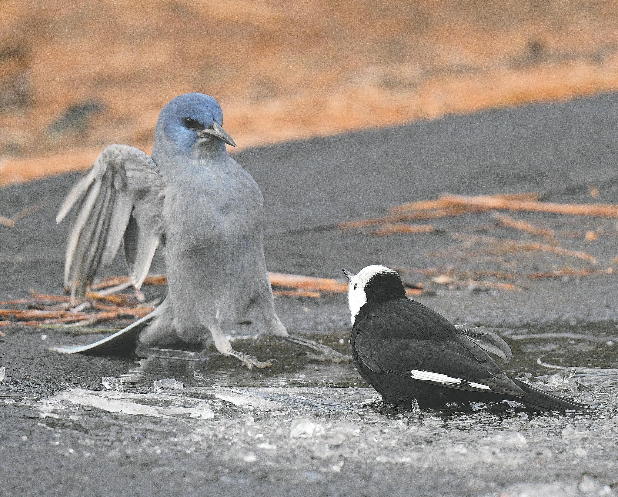 A Sisters birder captured a moment when a White-headed Woodpecker confronted a Pinyon Jay in a photograph that earned top honors from the Oregon Birding Association in their December photo contest.