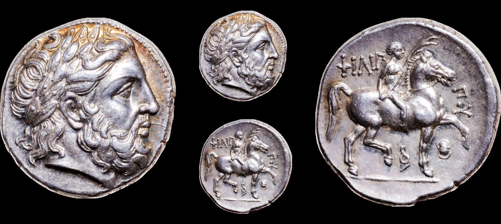The use of Zeus was a novelty in Macedonian coinage, but it fit perfectly with Philip's Panhellenic strategy. Olympia was one of the most important Panhellenic sanctuaries and was specifically associated with Zeus. The reverse of the coin symbolizes Philip II's victory in the horse race at the 106th Olympic Games in 356 BC. This same horse is possibly depicted here, together with the young jockey holding the victory palm branch.