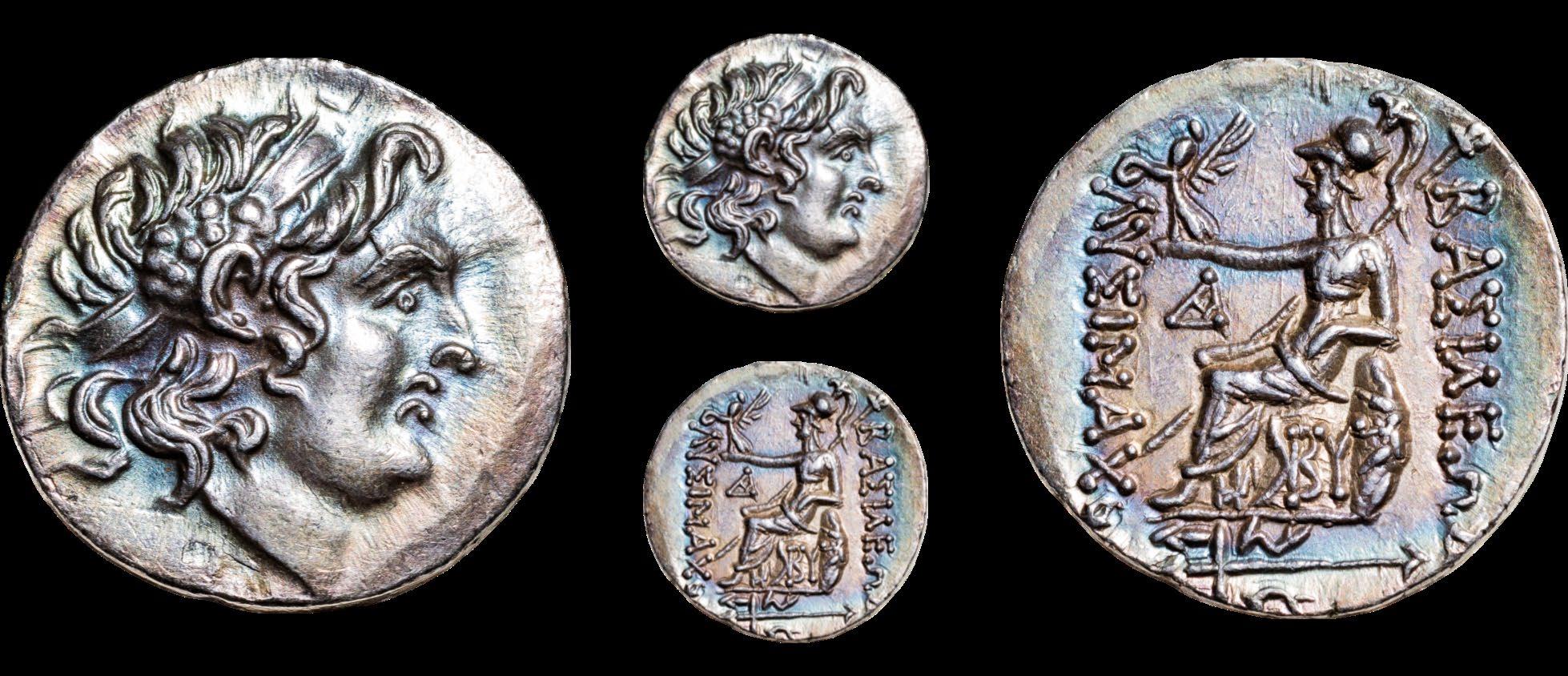 Lysimachus was one of Alexander's most effective successors. He first received the small and endangered province of Thrace as his satrapy. However, he steadily and successfully expanded his sphere of influence. He later also controlled Macedonia and a large part of Asia Minor. Like Alexander's other successors, Lysimachus continued to use Alexander's coin types at the beginning of his reign (compare also number 13). He later introduced his own coin type. He made some modifications to the old coin type but remained very subtle. He continued to use Alexander's portrait on the obverse, though now depicted as a god, wearing the ram's horn of the Greek-Egyptian deity Ammon. This is one of the first genuine portraits to appear on coins. On the reverse, he chose his patron goddess Athena. He also called himself King Lysimachus for the first time on a coin. The depicted Nike crowns the name of Lysimachus to honor him and his victories. The lion on the shield at Athena's side refers to Lysimachus' famous heroic act of killing a lion with his bare hands. Lysimachus thus creates a link to Alexander and his power and courage.