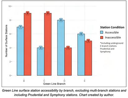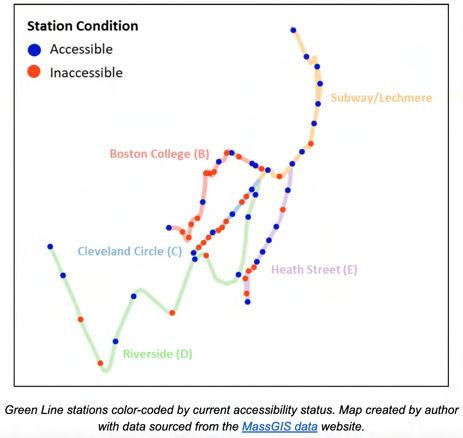 Besides these challenges, the Green Line Transformation takes a relatively narrow approach to improving accessibility in the frst place. Even when every Green Line station has been renovated, many passengers with disabilities may not beneft at all.