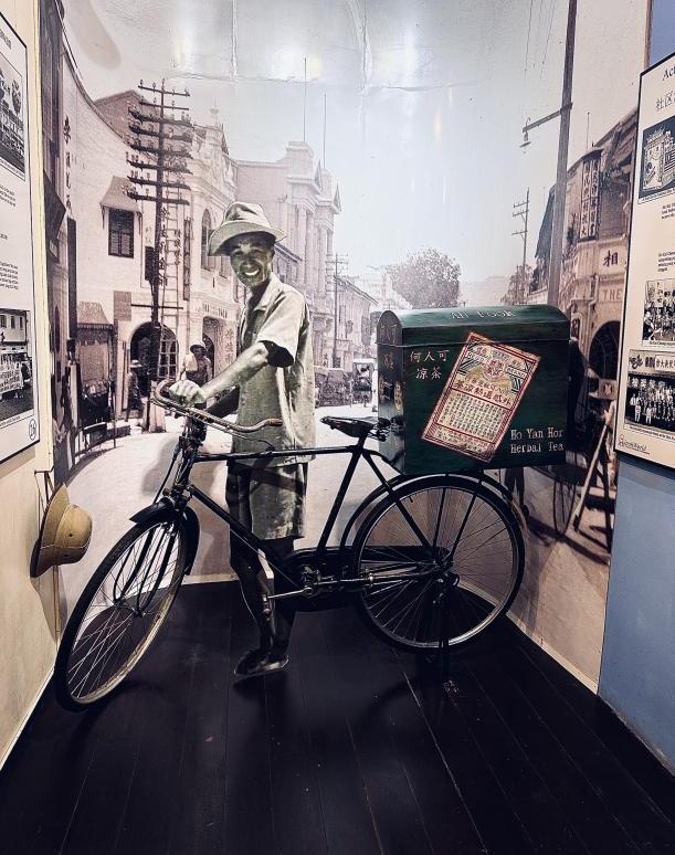 Toenhancevisitorengagement,themuseumseamlesslyintegratescommercial elementsintotheexhibitionexperienceOneofthemosticonicexhibitsis"The CyclingEntrepreneur",featuringacut-outofDr.HoalongsideavintageJapanese bicycle,atributetohisearlydaysofpersonallydistributingherbalteaacrossIpoh