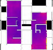 of activity is the lowest, therefore it requires the least amount of light and for optimal comfort level, the least amount of radiation is most desirable. On the other hand, dining room and kitchen requires more lux for users to eat and cook and due to the less frequent usage, a higher radiation is tolarable.