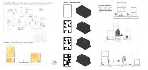required yet minimise radiation as much as possible. For all three spaces, louvres are deployed.