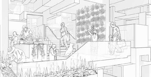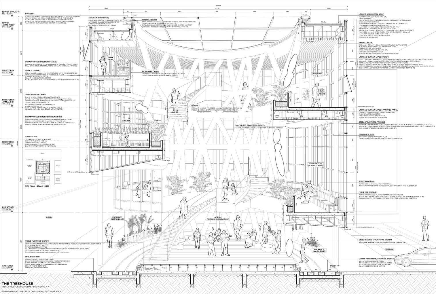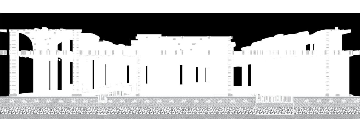 From the elevation view, interior spaces are subtly indicated by the varying density of columns, which visually guide the observer. Spaces within the workshop are partially obscured from the outsider view, this approach to design leaves room for interpretation, encouraging a dynamic interaction with the space. In contrast, the new design aims to clarify these ambiguous boundaries, revealing the hidden spaces within the forest of columns. By revealing these concealed areas, the design seeks to refine enhance the spatial quality of the redefined spaces.
