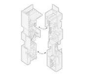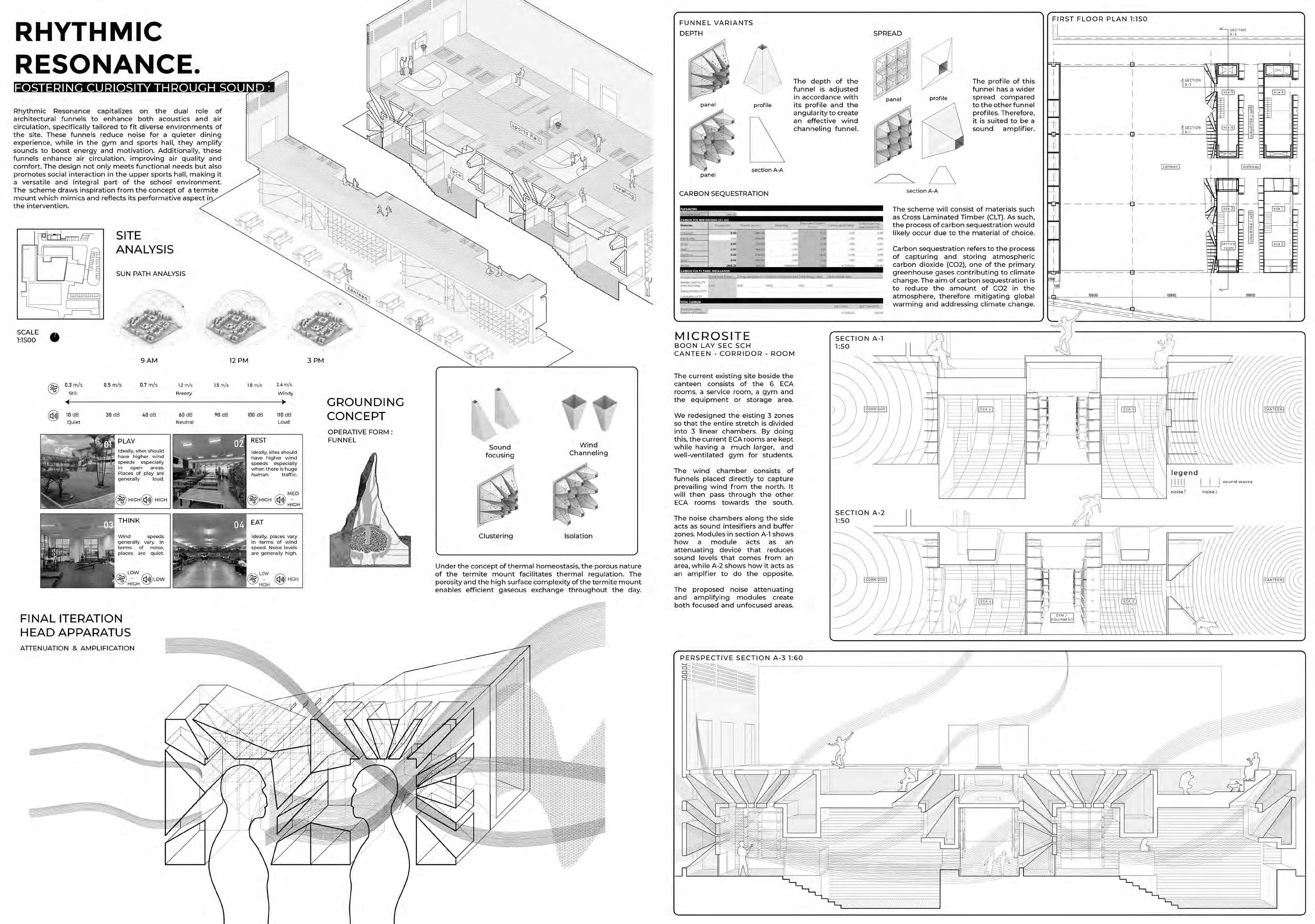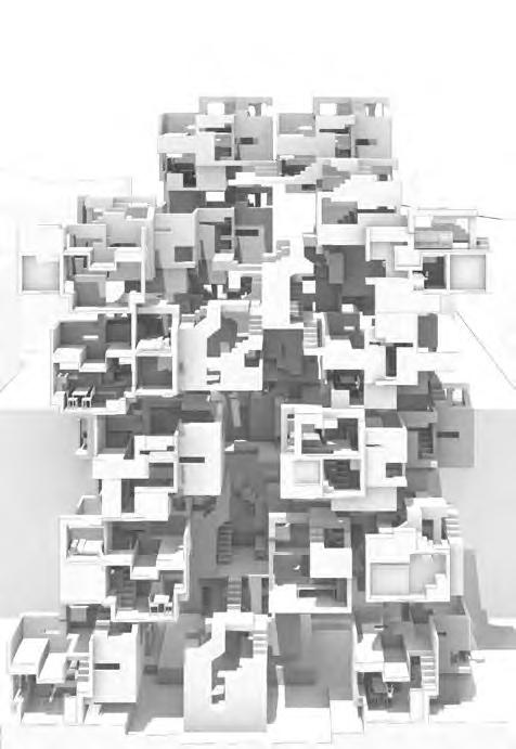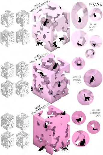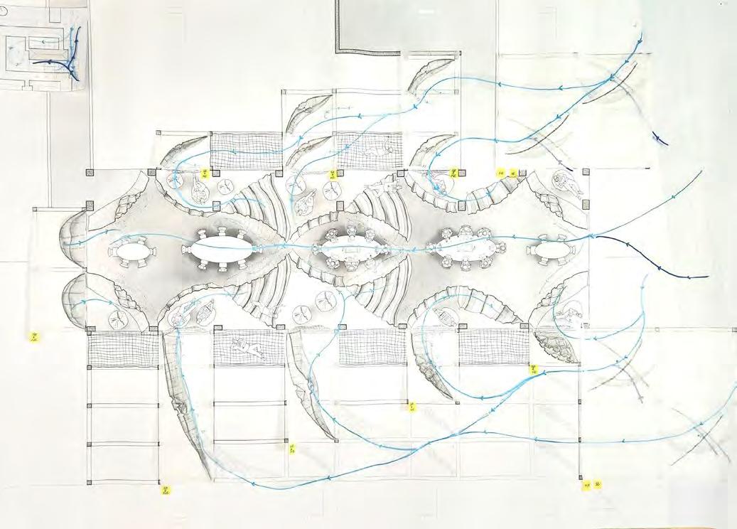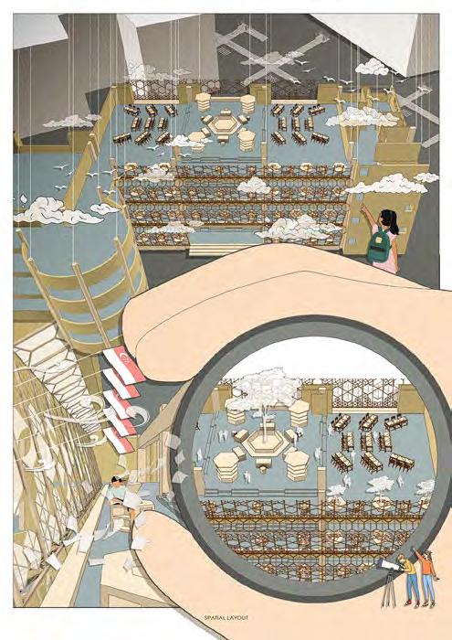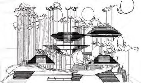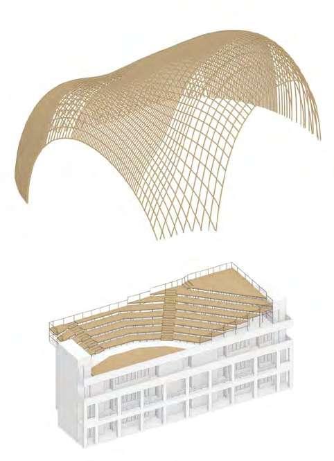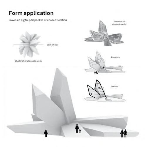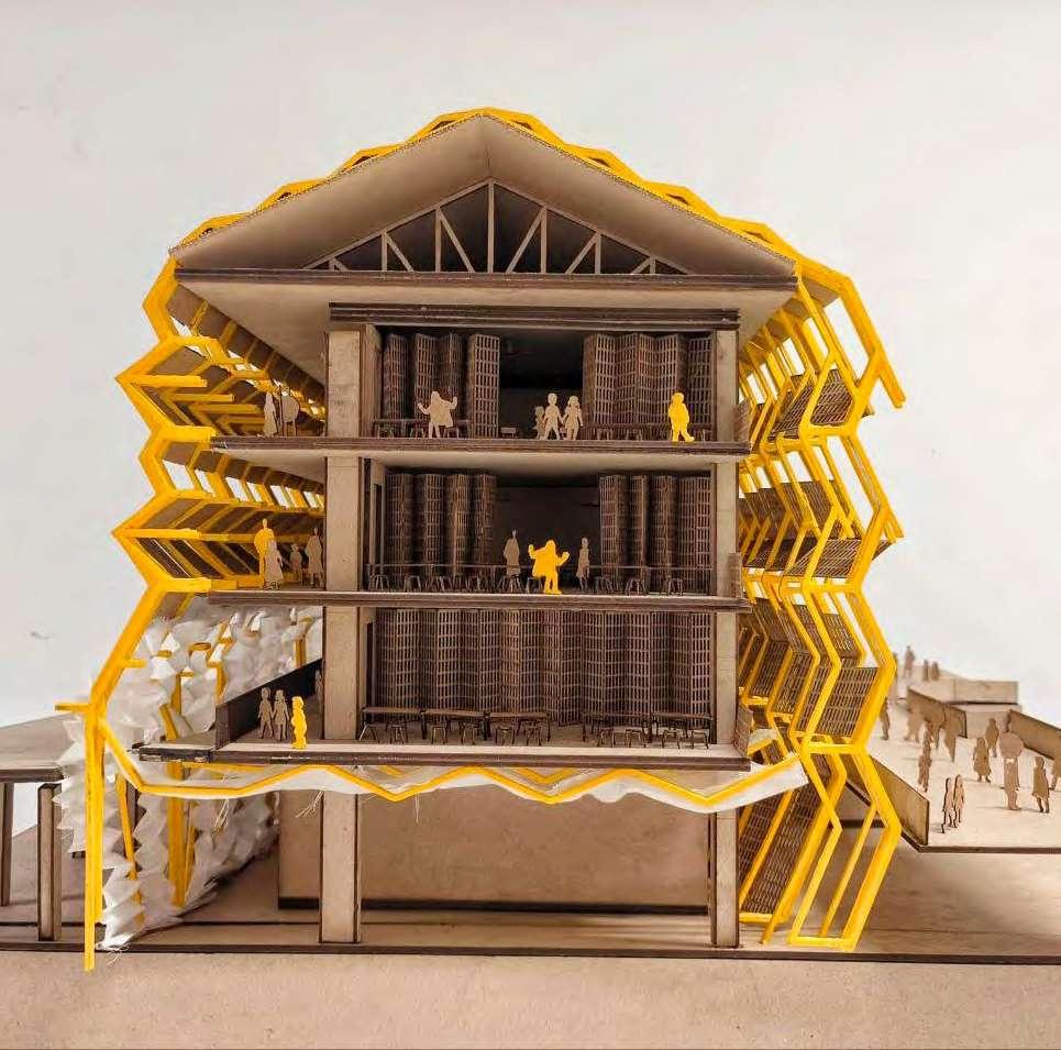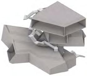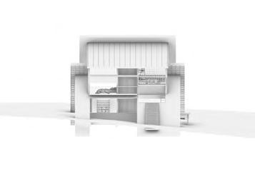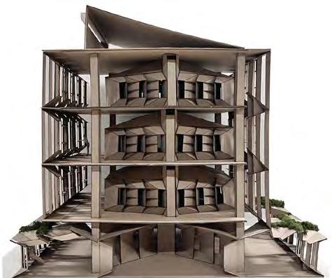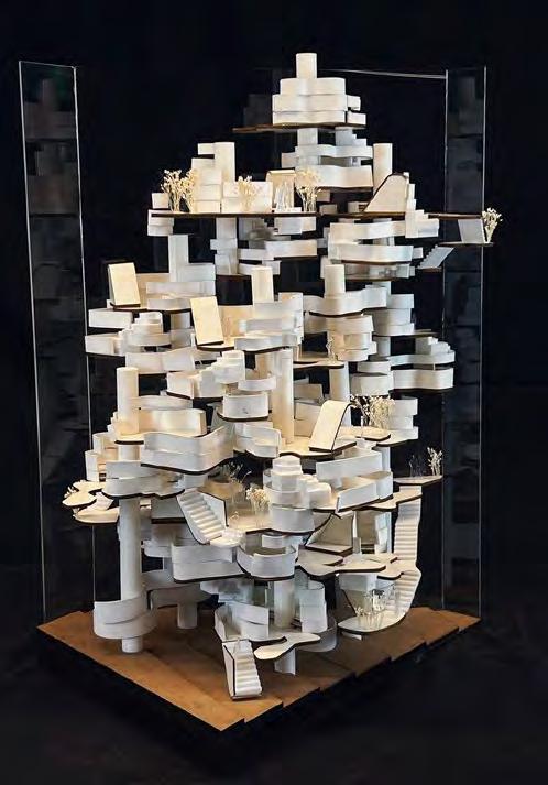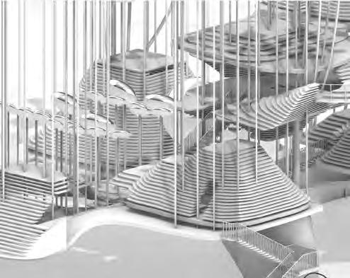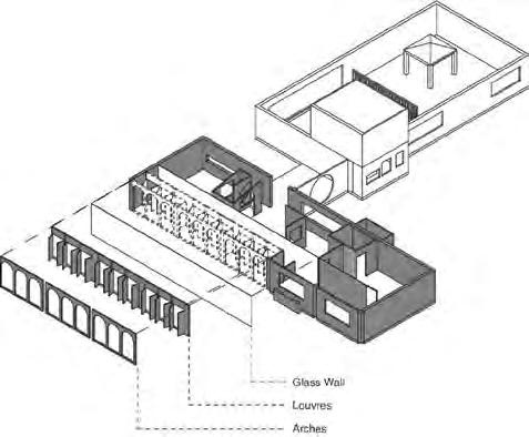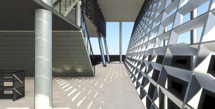The Aeolian Nexus is derived from Probe 01, where it aims to channel wind into the aparatus from one head to another. As the wind travels through the central junction, its velocity increases due to the centuri e ect. Louvres are used as both structural techtonic elements as wall as to direct wind into the apparatus.