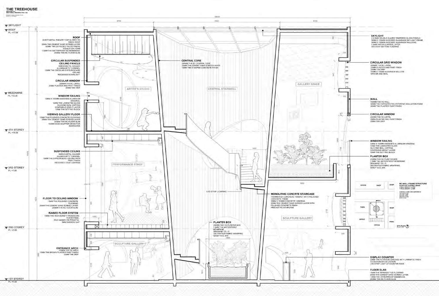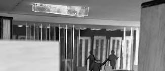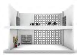 The double perforations mediate direct light penetration. Other than climatically, it also serves as a privacy bu er where needed.