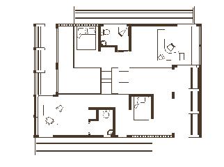 Moreover, a light chimney is used instead of a conventional skylight, this is because the piece of roof where the skylight is situated on faces the West side. Intense eveing light would pass through very easily if the
