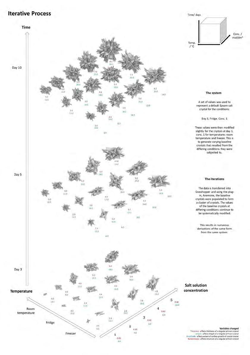 The above 10 iterations are architectural extractions of the behaviour of laze, where the main factors affecting laze behaviour are: Wind speed (m/s), Laze density (mg/mm) and time taken after laze forms.