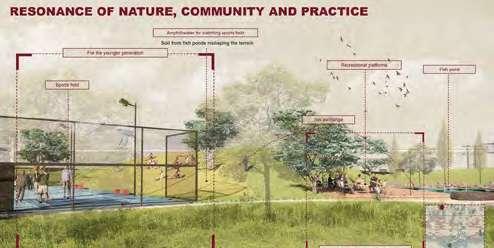 more pleasant learning environment. It is a school in a park that actively engages and integrates with the rejuvenated natural landscape. The community will be able to benefit from the new park spaces and the shared public amenities for sports, culture and dining with the school.